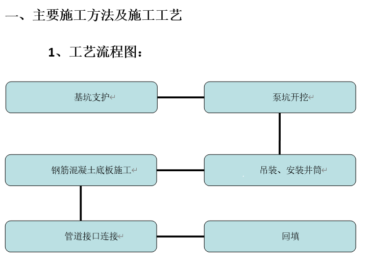 9、液位計安裝 液位調(diào)節(jié)器電纜要使用適當?shù)碾娎|網(wǎng)套,并將電纜懸掛于電纜支架。安裝固定液位控制器及懸掛電纜要避免纏結(jié)或末端在泵站的入口,同時也要檢查控制器被障礙物干擾從而影響液位傳感器的正常操作。 液位計裝入專門的保護套管,根據(jù)需求調(diào)節(jié)液位調(diào)節(jié)器的高度。 10、水泵安裝 1.檢查 當打開泵站時檢查并確認頂蓋和安全柵檔得到適當支撐。小心擠壓引起損傷。 設(shè)備運輸和地面安裝后,檢查并確認泵站內(nèi)所有設(shè)備已緊固妥當并處于正確位置。 檢查所有的電氣連接。 清理井底碎片。 用水平儀或鉛垂線檢查并確認導(dǎo)桿放置的豎直度。 確保電纜無銳彎或擠壓。 2.沿導(dǎo)桿放下泵。 當泵到達底部位置后,它將自動連接至預(yù)裝配的出水連接。 3.然后泵就可以沿著導(dǎo)桿提升檢查,無需拆開任何連接件。 4.拉緊提升鏈固定在入口框架上的鉤子上,電纜固定在電纜支架上。 11、粉碎性格柵機安裝 1.將電機與格柵連接法蘭處的螺栓卸下,然后將導(dǎo)桿支撐裝在中間,再將卸下的螺栓擰上。 2.將安裝成一體的粉碎格柵的導(dǎo)桿支撐抓住導(dǎo)桿,將格柵沿著導(dǎo)桿慢慢滑下到底。 3.將提升鏈固定在上部鏈勾上。 四、質(zhì)量保證措施 1.認真貫徹各項技術(shù)管理制度,嚴格按照施工規(guī)范和各種質(zhì)量驗收標準進行各項質(zhì)量管理工作。 2.項目部成立質(zhì)量控制小組,項目技術(shù)負責人為小組組長,包括質(zhì)量員以及各個工種工長,并明確責任,嚴把質(zhì)量關(guān)。 3.健全質(zhì)量責任制度 項目經(jīng)理及項目總工、質(zhì)量負責人對質(zhì)量全面負責,專職質(zhì)量檢查員保證分部分項工程的施工質(zhì)量,班組質(zhì)量員和每個操作工人保證每一檢驗批及工序的施工質(zhì)量。施工中每道工序都認真把關(guān),實行質(zhì)量跟蹤檢查,走動管理、旁站監(jiān)督,實行質(zhì)量否決權(quán)制度,以嚴格的質(zhì)量管理制度和獎罰措施來確保每一環(huán)節(jié)施工質(zhì)量受控有序。 4.制定切實可行的質(zhì)量保證措施 全面實行工程質(zhì)量目標管理和全面質(zhì)量管理,以各專業(yè)(工種)施工隊自控為主,嚴格執(zhí)行自檢、專檢、隱檢施工質(zhì)量報驗程序,發(fā)現(xiàn)問題決不姑息。 在每一分項工序施工前,編制針對性強的技術(shù)交底,對班組長說明質(zhì)量控制重點、難點及控制方法。確保每一操作員明確質(zhì)量標準、自檢內(nèi)容、方法以及各部位的操作方法。 增強全員的質(zhì)量意識,形成從上到下的質(zhì)量管理自我約束機制,對質(zhì)量管理中發(fā)現(xiàn)的嚴重問題進行通報批評,必要時進行一定的經(jīng)濟處罰。對于質(zhì)量檢查連續(xù)達標的施工班組進行通報表揚,進行物質(zhì)獎勵。真正創(chuàng)造獎優(yōu)罰劣,優(yōu)勝劣汰的競爭機制。 在施工全過程各個環(huán)節(jié)都必須注重質(zhì)量檢查,從材料進場到工序檢查、竣工驗收,每個環(huán)節(jié)都要做到責任到個人、執(zhí)行有依據(jù),處理按程序,交接有記錄,確保整個施工質(zhì)量動態(tài)管理,受控有序。 5.電焊工、起重工等特種技術(shù)崗位工種人員應(yīng)持證上崗。 6.施工中發(fā)生質(zhì)量事故,及時報告甲方,做到及時查清事故原因、事故責任,并采取切實可行的補救措施。 7.工程施工完成后,由甲方組織有關(guān)部門進行竣工驗收。 |