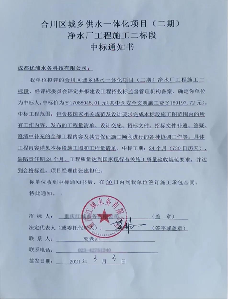 | 新年開門紅,祝賀優浦水務又中標一體化設備大項目 |